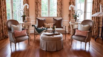 The design blends two of our favorite styles: French design and American classic. Florals, plaids, and rich leather accents come together seamlessly, creating a space that feels layered, timeless, and inviting.